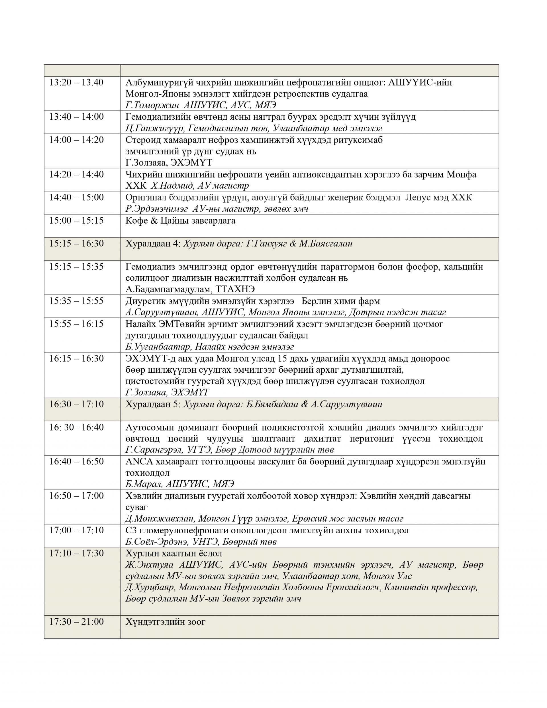 МНХолбооны https://nephrology.mn/ цахим хуудаснаас хурлын мэдээллийг хүлээн авна уу.